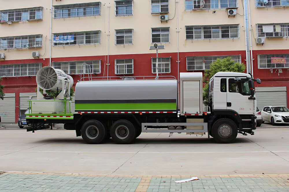 | 整车说明: | 专用装置为抑尘雾炮,用于城市抑尘.整车长/轴距/后伸对应关系为(mm):10600/3900+1350/700,10625/3875+1400/700,11000/4300+1350/700,11220/4350+1350/920,11245/4275+1400/920,11520/4600+1350/920,11545/4575+1400/920,11600/4300+1350/1300,11700/5000+1350/700,11725/4975+1400/700.防护材料:Q235A碳钢,连接方式:左右侧面及后部防护均采用焊接连接,后部防护断面尺寸(mm):120×50,后部防护离地高度(mm):500.ABS系统控制器生产企业/型号为威伯科(上海)管理有限公司/4460046300.当整备质量为(kg):14180时,轴距为(mm):3900+1350,3875+1400,4275+1400,4300+1350,4350+1350,当整备质量为(kg):15500时,轴距为(mm):4600+1350,4575+1400,4975+1400,5000+1350.随底盘选装驾驶室.选装不同的雾炮图片. | ||
