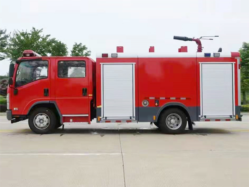消防泵在箱体中间或者后置,泵房左右两侧4个出水口、器材箱左右后侧均有新款易拉高强度铝合金卷帘门。