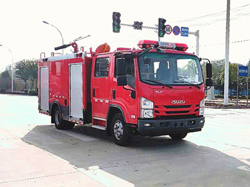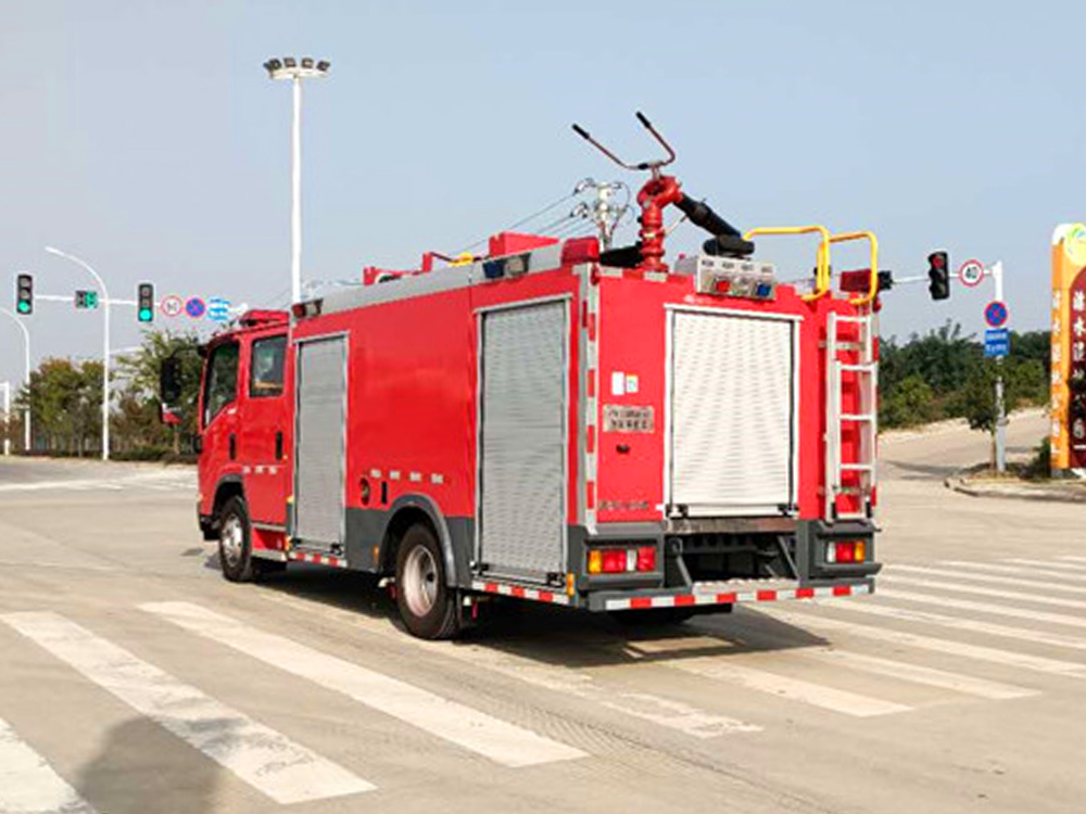 消防泵在箱体中间或者后置,泵房左右两侧4个出水口、器材箱左右后侧均有新款易拉高强度铝合金卷帘门。