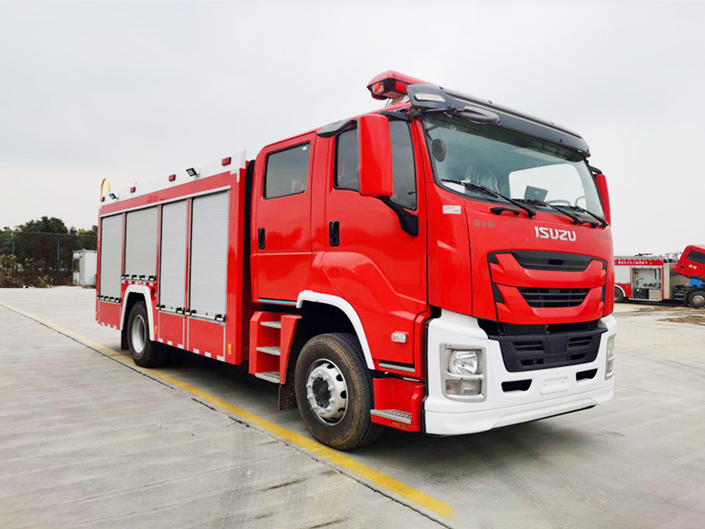 消防泵在箱体中间或者后置,泵房左右两侧4个出水口、器材箱左右后侧均有新款易拉高强度铝合金卷帘门。