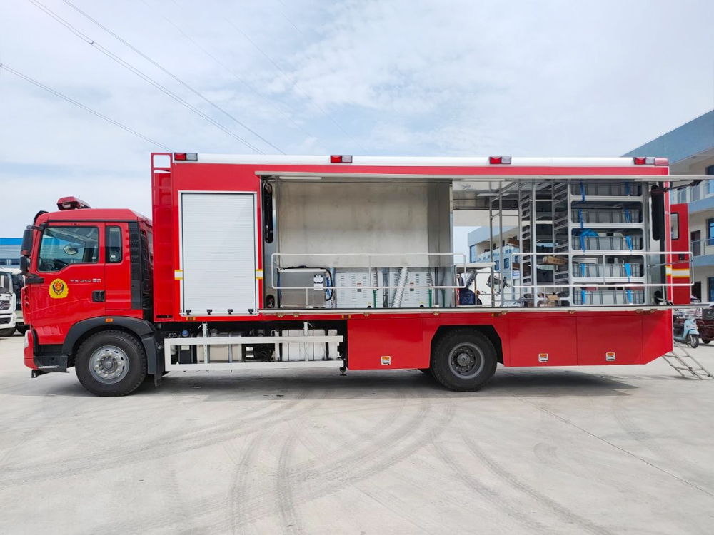 | 整车说明: | 1.该车主要用于野外条件下被服洗涤工作,主要专用装置为烘干机、洗衣机、存储架等;2.侧防护材质为铝合金6061-T6,采用螺栓连接,下边缘离地高430mm;后防护材质为Q235,焊接连接,截面尺寸宽×高(mm):100×100.下边缘离地高440mm.3.ABS系统生产厂家及型号为:威伯科(上海)管理有限公司/4460046300.4.整车长/轴距/后悬对应关系为(mm):10470/6050/2990,9260/5200/2630,8500/4500/2570; 5.随底盘装有限速装置,最高车速(km/h)为89; .6.箱顶部封闭,不可开启; 7.随底盘选装驾驶室,选装外观样式. | ||