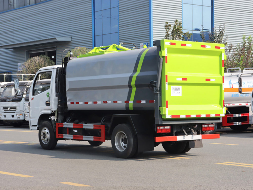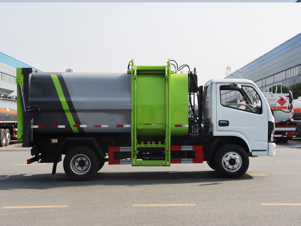 | 整车说明: | 1.该车主要用于垃圾收集转运,专用装置为垃圾箱及提升机装置;2.随底盘选装驾驶室,选装箱体侧面及后部样式.整车外形尺寸长/轴距/后悬(mm)对应关系为:5400/2700/1645,5700/2950/1695,5995/3308/1632.3.防护材料:Q235B碳钢,连接方式:左右侧面防护与副梁均采用焊接连接,后下部防护与车架采用焊接连接,后部防护断面尺寸(mm):120×50,后部防护离地高度(mm):390;4.ABS型号/厂家:ABS/ASR-12V-4S/4M/襄阳东风隆诚机械有限责任公司;5.发动机与油耗值(L/100km)的对应关系为:CY4BK161/11.4,CY4BK461/11.4,ZD30D16-6N/11.4,CA4DB1-11E6/11.4,YCY24140-60/11.4,D20TCIF1/11.4,Q23-115E60/11.4,H20-120E60/11.4,CA4DB1-13E6/11.4.选装提升机构样式.随底盘选装燃油箱,电瓶,尿素罐,储气筒左右安装位置及附件布局. | ||