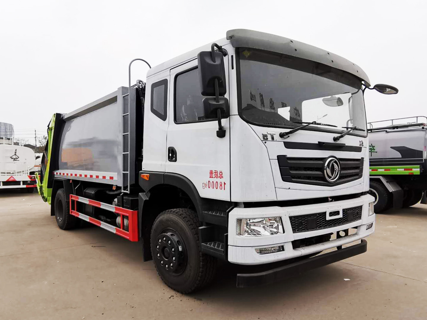 | 整车说明: | 随底盘选装前围和灯具,选装宽体保险杠,脚踏板;该车用于垃圾收集转运,主要专用装置为填充器,垃圾箱;整车长度/轴距/后悬对应关系分别为(mm):8580/4500/2680,8680/4500/2780,8780/4700/2680,8880/4700/2780,9080/5000/2680,9180/5000/2780; 当后伸为400mm时,整车长度/轴距/后悬对应关系分别为(mm):8980/4500/2680,9080/4500/2780,9180/4700/2680,9280/4700/2780,9480/5000/2680,9580/5000/2780;选装弧形车厢,选装后部工作装置;选装厢体样式,选装全密封盖,选装翻桶装置,选装翻斗装置,选装摆臂装置,选装全密封斗装置;侧防护装置材料为Q235,连接方式:螺栓连接固定,后防护由车辆专用作业装置代替,后部专用装置离地高450mm;采用的发动机型号及油耗值(L/100km)对应关系:CA4DK1-22E6/25.6,CA4DK1-18E6/25.6;安装具有卫星定位功能的行驶记录仪;ABS系统生产厂家:长春瑞立科密汽车电子有限公司,型号:CM4XL. | ||