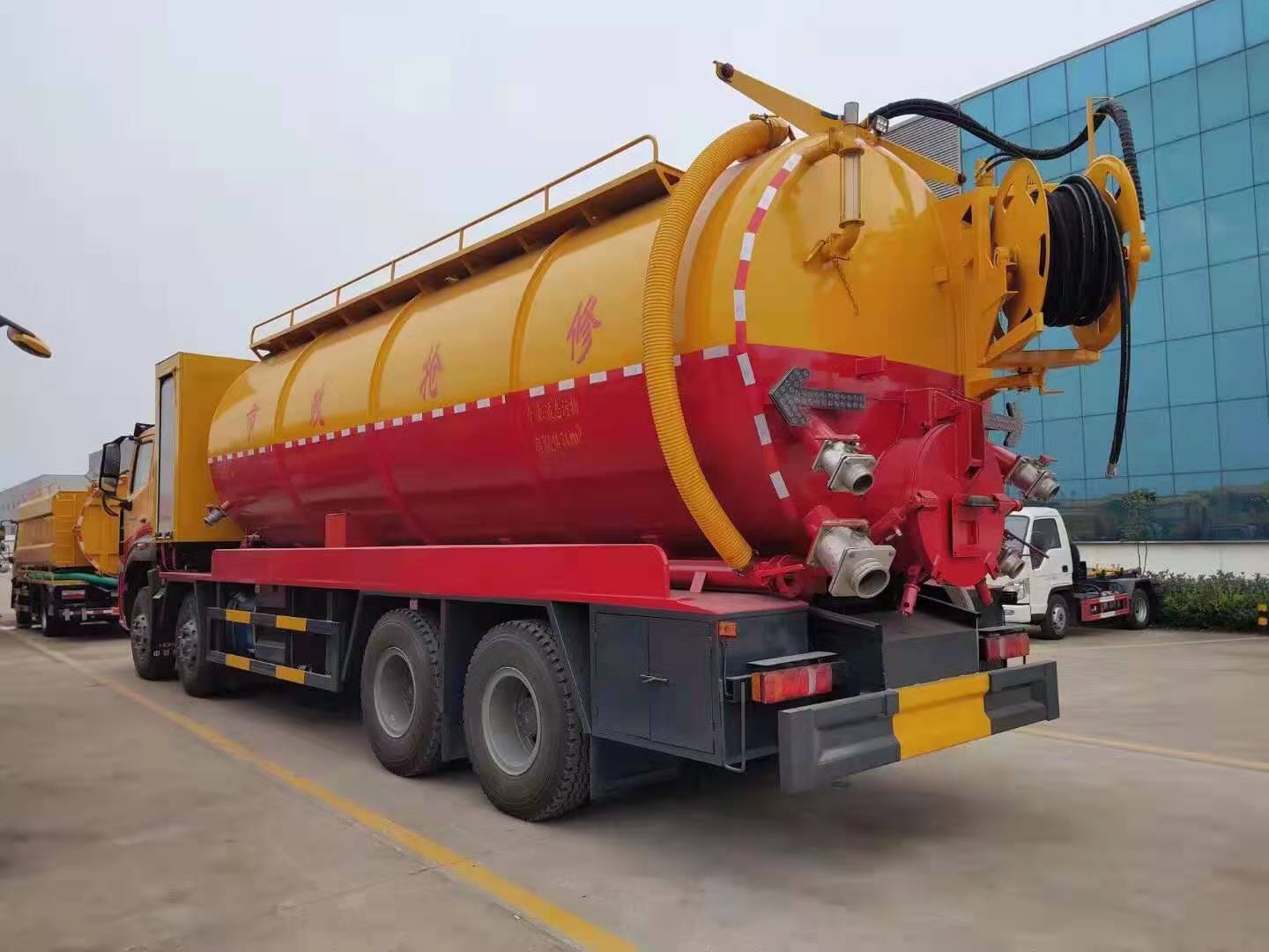 | 整车说明: | 1、该车用于清洗吸污,主要专用装置为真空泵和罐体。罐体尺寸为(直段长×直径)(mm):7100×2350,其中罐体前端为清水罐(直段长3100mm);后端为污水罐(直段长4000mm)。两罐独立,且不能同时满载。清洗功能时用清水罐,吸污功能时用污水罐。污水罐有效容积14.74立方米,介质:液态污物,密度:800千克/立方米;清水罐有效容积11.79立方米,介质:水,密度:1000千克/立方米。2、侧、后防护材料均为Q235,焊接。后防护截面尺寸200×50mm,下边缘离地高500mm。选装罐体顶部护栏样式,选装侧面清洗管,选装后罐口液压开启样式,选装后部阀门,选装后部清洗管卷盘样式,后部箭头灯为选装件。3、仅采用轴距(mm):1800+4600+1350,1800+4575+1400。随底盘选装半高顶驾驶室、选装昼间行驶灯、选装油浴式空滤器。ABS系统型号为446 004 6300,生产企业为威伯科汽车控制系统(中国)有限公司。 | ||