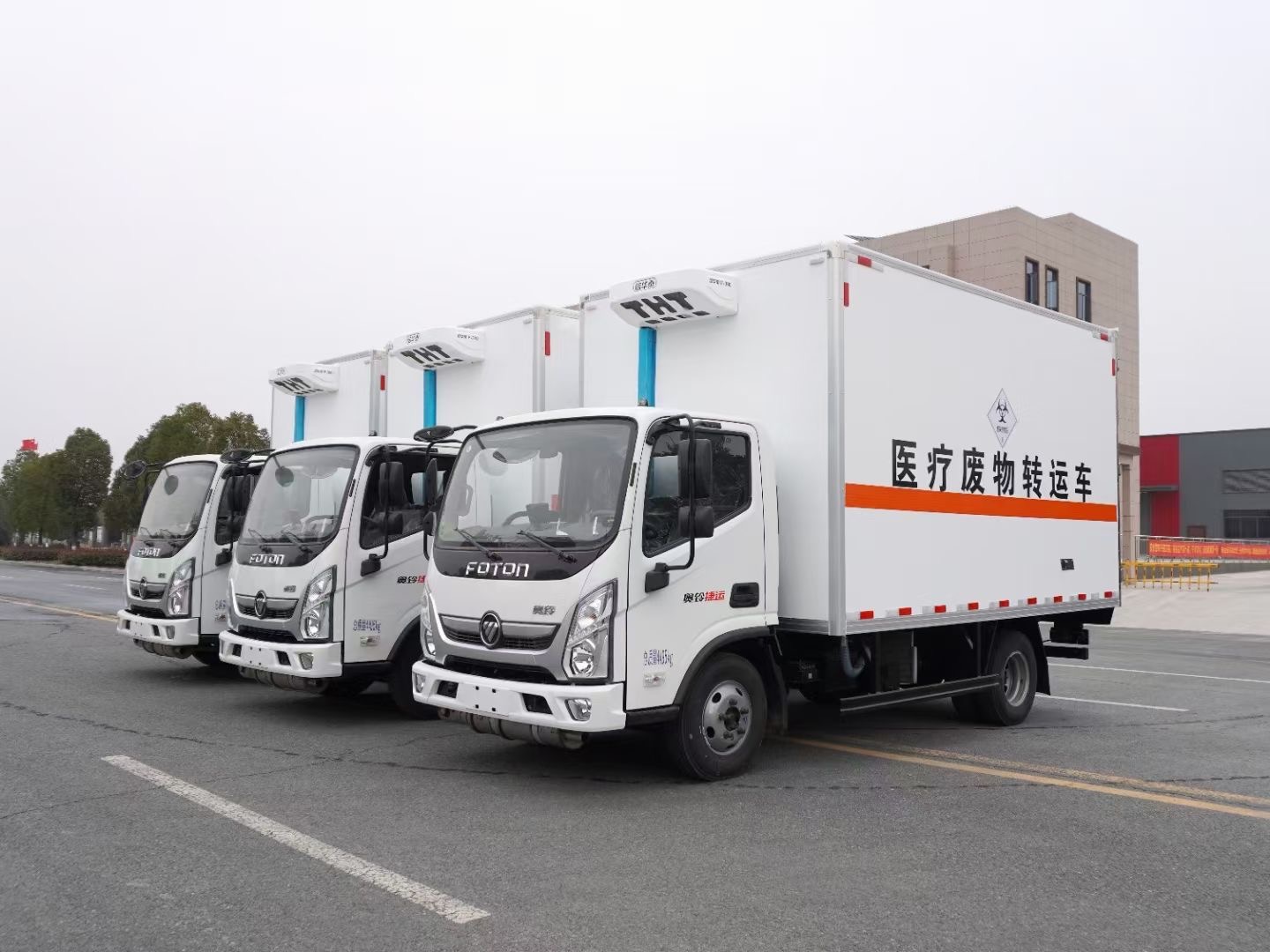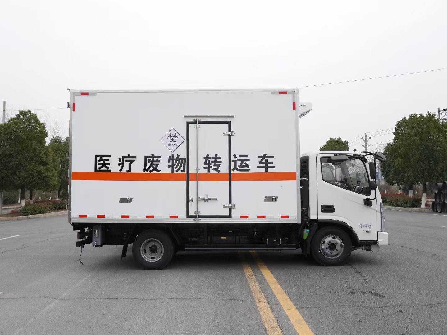 该车为危险货物运输车辆,运输介质具有独立容器(瓶)包装,类项号:6.2.车厢顶部封闭且不可开启.侧面防护材料:Q235A碳钢,连接方式:左右侧面防护采用焊接连接.后防护装置材料:Q235A碳钢.连接方式:采用螺栓+焊接连接.后部防护断面尺寸(mm):120×50,后部防护离地高度(mm):420.该车前轮安装盘式制动器,前置排气管,采用子午线轮胎,装配限速装置,限速80km/h,转向轮装备轮胎爆胎应急防护装置.安装带有卫星定位功能的行驶记录仪.ABS系统控制器型号/生产企业:ABS-E/威伯科汽车控制系统(中国)有限公司,ABS-VI·E/广州瑞立科密汽车电子股份有限公司;YF8/武汉元丰汽车电控系统有限公司.仅选用发动机/油耗申报值(L/100km)对应关系为:F2.8NS6B131/11.47,Q28-130E60/11.02,F2.5NS6B131/11.27.随底盘选装驾驶室,选装其他厂家同等功率不同型号的制冷机组,选装厢体右侧不开侧门.选装ETC车载装置.整备质量对应的配件配备情况:润滑剂,燃油,备用车轮,制冷机组,灭火器.货厢重量1030kg(含制冷机组,侧面防护装置,后防护装置,货箱重量误差不超3%),厢体材料为外玻璃钢,内不锈钢,中间保温板.底板厚90mm,边板厚60mm.选装不同的侧门样式. |