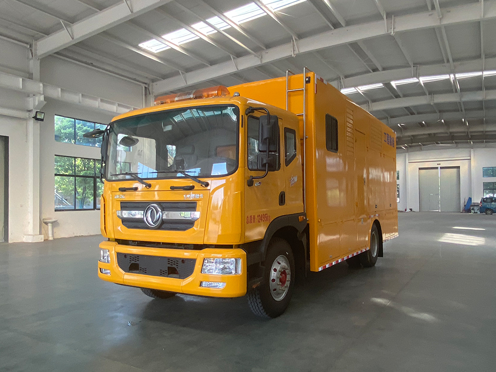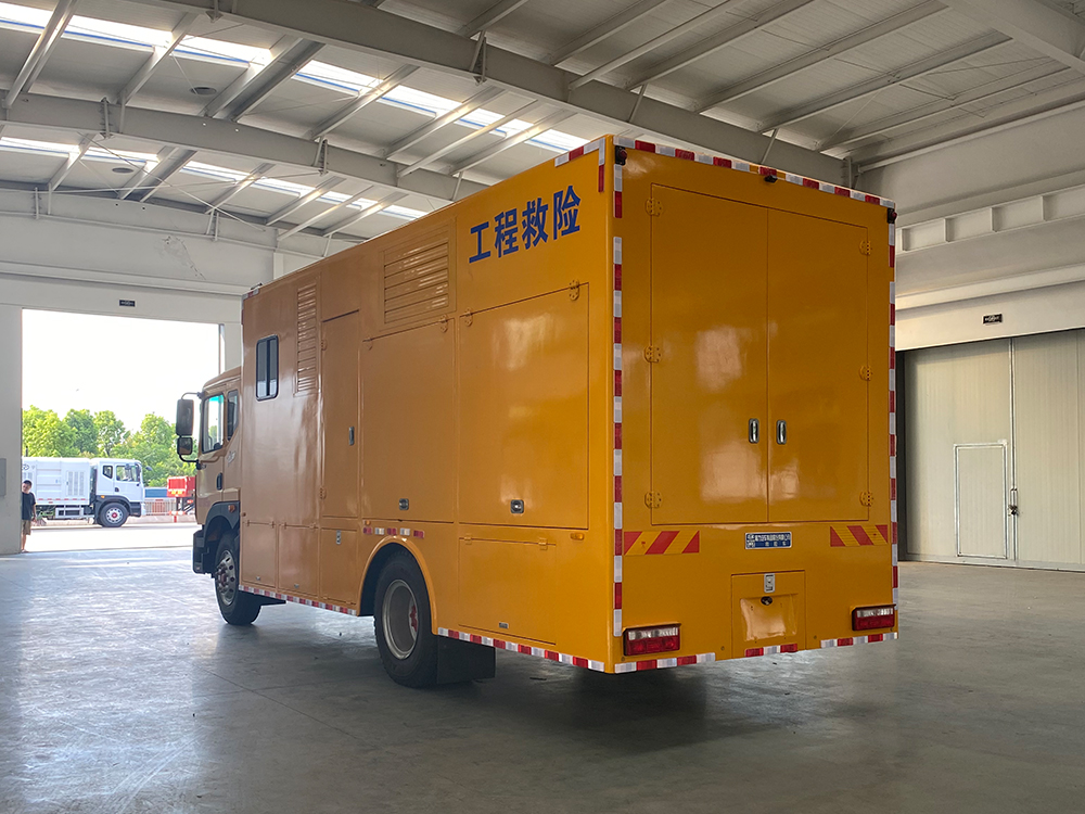 | 整车说明: | 车厢顶部封闭,不可开启。车辆主要专用装置:装有静音车厢、发电机组、电缆卷盘、救险设备等,内部可选装电驱式排水泵或柴油机驱动式水泵或液压水泵。专用功能及装置:发电机机组,远距离输电装置,电焊机以及应急抢险抢修时必备的光源,气源,电源设备,整车长/轴距/后悬对应关系为(mm):8680/4700/2720,8480/4500/2720,8180/4500/2420,7910/3950/2700,7610/3950/2400;防护材料为Q235碳钢,侧面防护由裙板结构构成,,离地高度430mm,后下防护采用螺栓连接,断面尺寸为Φ120mm,下缘离地高500mm;ABS系统生产厂家,型号 :焦作博瑞克控制技术有限公司,J ABS;襄阳东风隆诚机械有限责任公司,ABS/ASR-24V-4S/4M。安装液压尾板:后部尾板收起状态的水平长度是300mm,尾板质量为440kg。选装上装新外形,选装不带尾板。 | ||