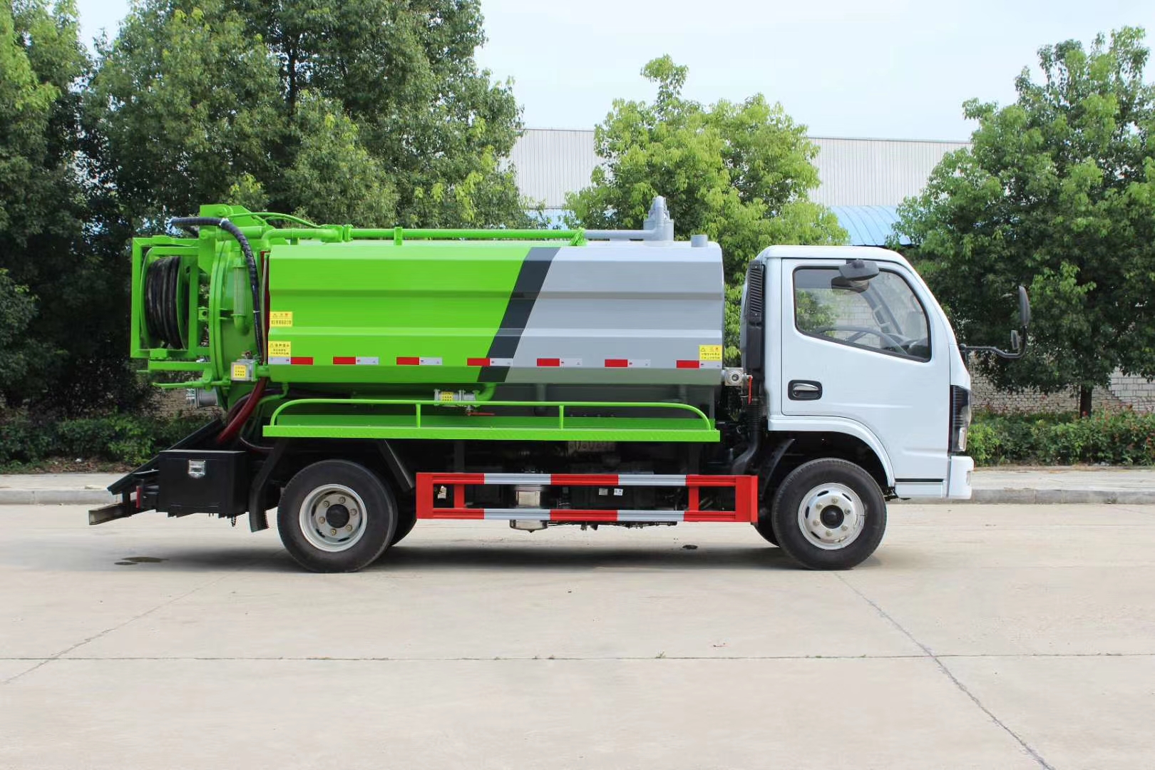 | 整车说明: | 选装前面罩,前保险杠,前组合灯具。随底盘选装左右油箱位置;选装侧边结构样式和后部排污结构;采用3308mm轴距底盘。罐体外形尺寸为: 罐体外形尺寸(直段长×直径)(mm):3200×1200。其中罐体前部1100mm为清水罐。污水罐:运输介质:液态污物,密度900千克/每立方米,载质量2000kg,罐体有效容积2.33立方米。清水罐:运输介质:水,密度1000千克/每立方米,载质量1400kg,罐体有效容积1.4立方米;两罐独立,且不能同时满载。清洗功能时用清水罐,吸污功能时用污水罐侧;侧防护采用冷弯型钢/Q235,螺栓连接。后防护采用冷弯型钢/Q235,焊接连接。后防护截面高度尺寸120mm,截面宽度尺寸50mm,下边缘离地高度490mm。ABS型号/厂家:ABS/ASR-12V-4S/4M/襄阳东风隆诚机械有限责任公司。清洗和吸污功能不同时使用,两罐不能同时装载。 | ||