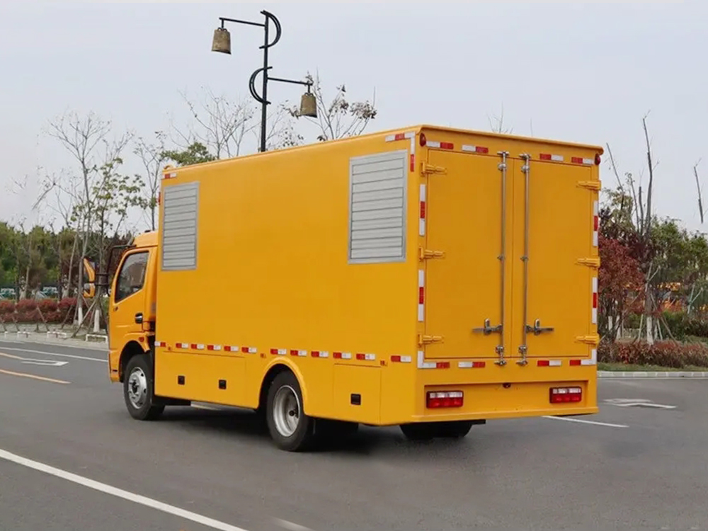 | 整车说明: | 该车厢内装有发电机组,电缆绞盘,液压(机械)支腿动力电缆,照明系统等设施,主要用于处理突发事件的应急抢险供电;车厢顶部封闭不可开启;防护材料:侧后防护由车身结构代替,后防护下边缘离地高:450mm;整车长/轴距对应关系为(mm):7250/3800,7400/3950,7500/4050,7550/4100,7850/4400;ABS型号/厂家:ABS型号:ABS/ASR-24V-4S/4M,厂家:襄阳东风隆诚机械有限责任公司;随底盘选装驾驶室;选装不同外观样式. | ||