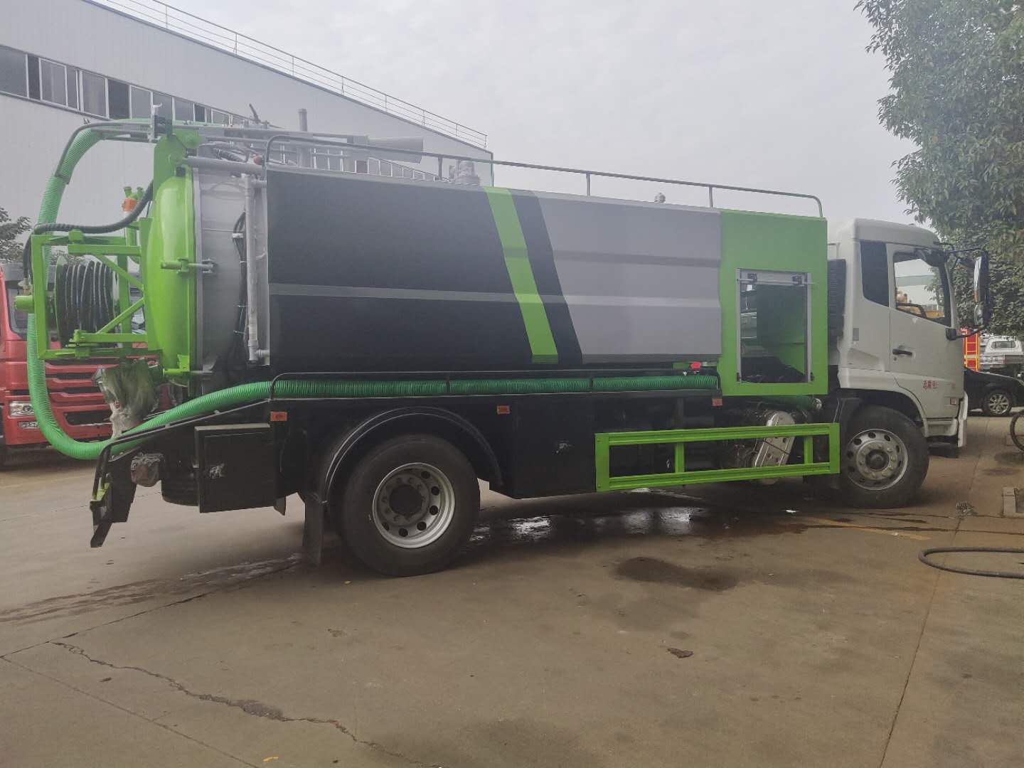 | 整车说明: | 该车装有取力器,真空泵,液压调杆或手动吊杆用于吸污;装有高压水泵,高压水管用于清洗;罐体前部长(mm):1200,用于安装高压泵专用装置;吸污罐罐体有效容积:7.92立方米;1,罐外形尺寸(直线段长×直径)为(mm):4000×1600时,对应整车长/轴距/高度/后悬为:8600/5300(5000)/3550/1870(2170),8600/4700(4500)/3550/2470(2670);2,罐外形尺寸(直线段长×直径)为(mm):3050×1800时,对应整车长/轴距/高度/后悬为:7700/3950/3750/2320,7700/3050×1800/4200(3800)/3750/2070(2470);两侧水箱有效容积:4.32立方米;吸污罐和水箱为两个独立容器,不能同时满载;防护材料:Q235A碳钢,连接方式:左右侧面及后下部防护均采用焊接连接,后部防护断面尺寸(mm):280×50,后部防护离地高度(mm):490;随底盘选装驾驶室;ABS型号/生产厂家:3631010-C2000/东科克诺尔商用车制动系统(十堰)有限公司,ABS 8/东科克诺尔商用车制动系统(十堰)有限公司, 4460046450/威伯科汽车控制系统(中国)有限公司;选装不带吊杆。 | ||