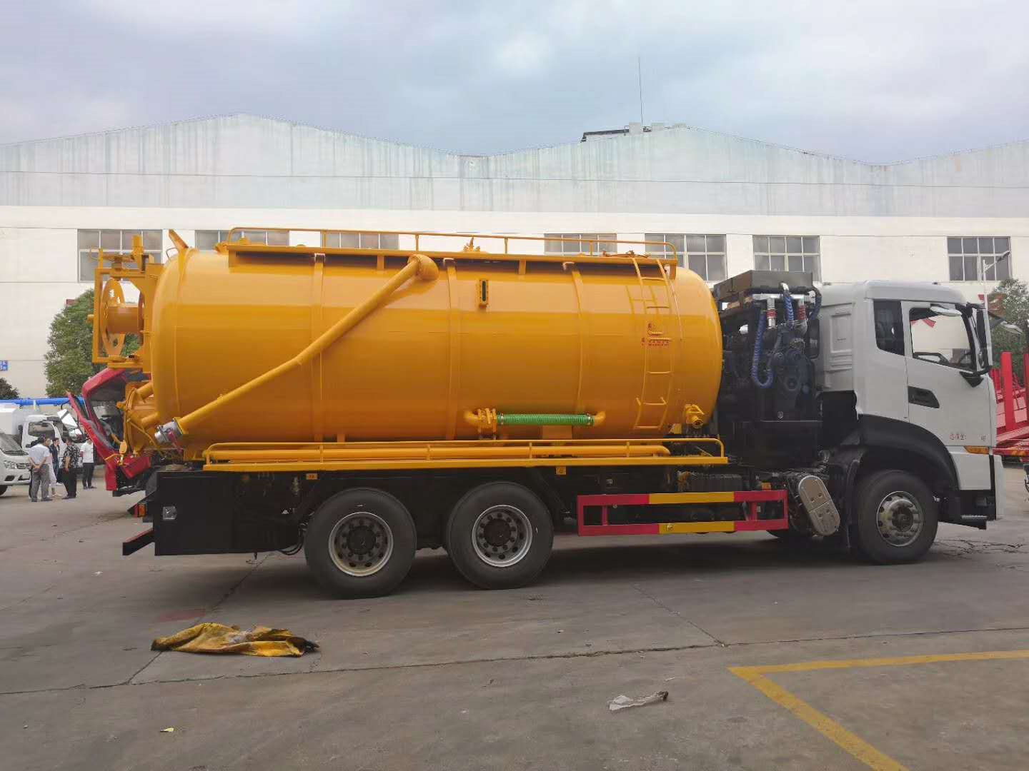 | 整车说明: | 该车装有取力器,真空泵,用于吸污;装有高压水泵,高压水管用于清洗;罐体尺寸为(直线段长×直径)(mm):5400×2100,罐体前半段为清水罐,清水罐(直线段长×直径)(mm):2400×2100,罐体有效容积:7.37立方米;罐体后半段为污水罐,污水罐(直线段长×直径)(mm):3000×2100,罐体有效容积:9.67立方米,吸污罐和水罐为两个独立容器,不能同时满载;前悬/轴距/后悬对应为:1500/5700+1350/1600,1480(1500)/5350+1350/1970(1950),1480(1500)/4350+1350/2970(2950);1500/4600+1350/2700;该车随底盘选装驾驶室,防护材料:Q235A碳钢,连接方式:左右侧面及后下部防护均采用焊接连接,后部防护断面尺寸(mm):120×50,后部防护离地高度(mm):450,ABS型号/生产厂家:3631010-C2000/东科克诺尔商用车制动系统(十堰)有限公司,ABS 8/东科克诺尔商用车制动系统(十堰)有限公司,4460046450/威伯科汽车控制系统(中国)有限公司。 | ||