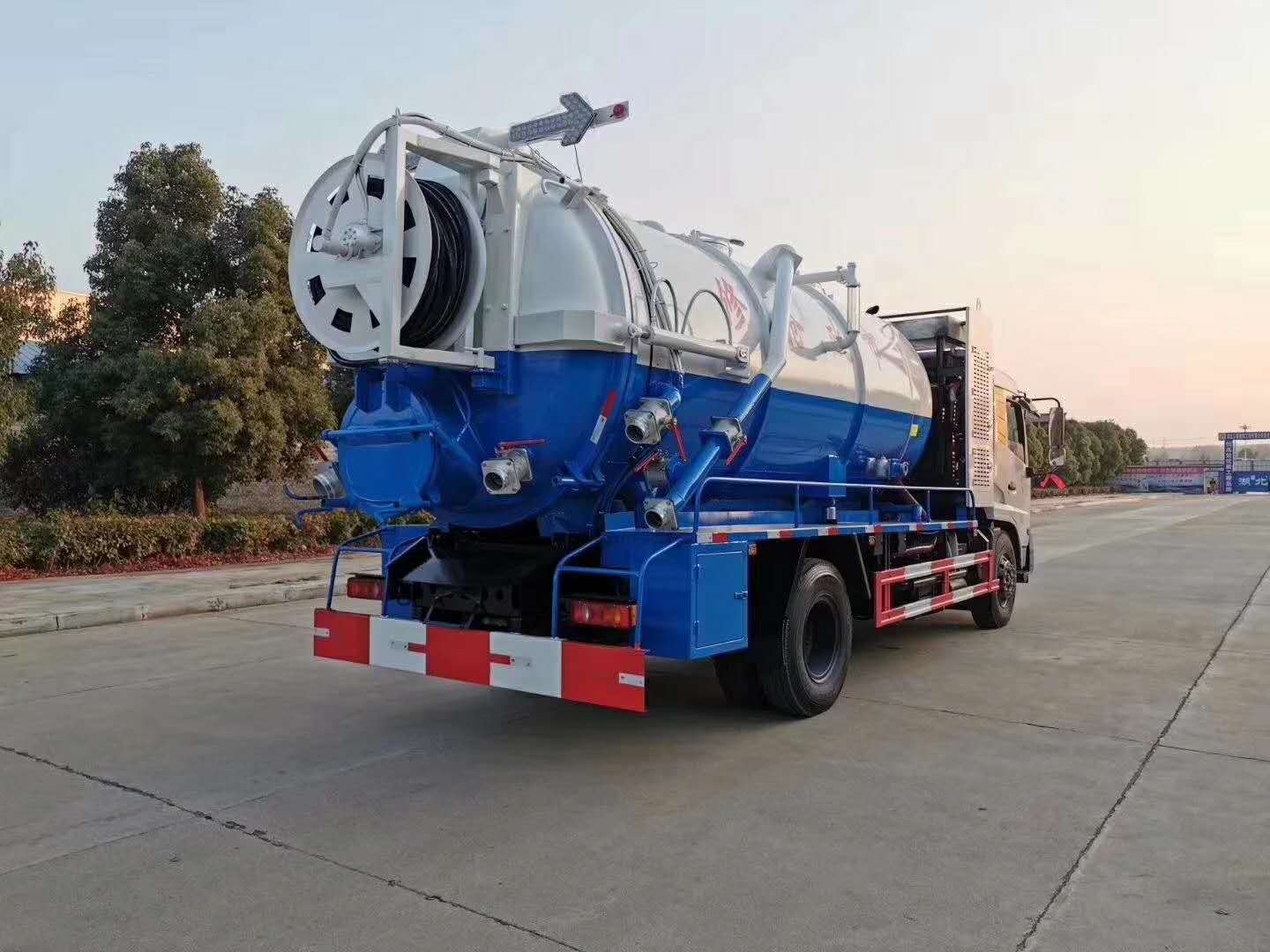 整车说明: 该车装有取力器,真空泵,液压调杆或手动吊杆用于吸污;装有高压水泵,高压水管用于清洗;罐体前部长(mm):1200,用于安装高压泵专用装置;吸污罐罐体有效容积:7.92立方米;1,罐外形尺寸(直线段长×直径)为(mm):4000×1600时,对应整车长/轴距/高度/后悬为:8600/5300(5000)/3550/1870(2170),8600/4700(4500)/3550/2470(2670);2,罐外形尺寸(直线段长×直径)为(mm):3050×1800时,对应整车长/轴距/高度/后悬为:7700/3950/3750/2320,7700/3050×1800/4200(3800)/3750/2070(2470);两侧水箱有效容积:4.32立方米;吸污罐和水箱为两个独立容器,不能同时满载;防护材料:Q235A碳钢,连接方式:左右侧面及后下部防护均采用焊接连接,后部防护断面尺寸(mm):280×50,后部防护离地高度(mm):490;随底盘选装驾驶室;ABS型号/生产厂家:3631010-C2000/东科克诺尔商用车制动系统(十堰)有限公司,ABS 8/东科克诺尔商用车制动系统(十堰)有限公司, 4460046450/威伯科汽车控制系统(中国)有限公司;选装不带吊杆。