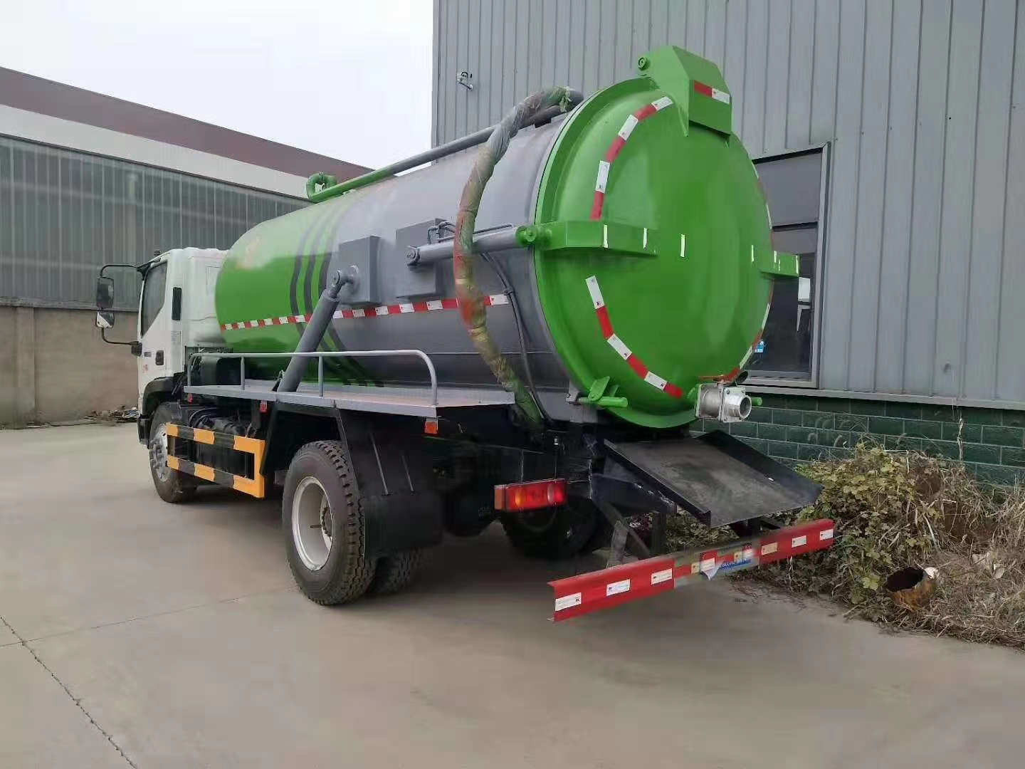 | 整车说明: | 该车用途为吸污,主要装置为污罐;罐体有效容积:7.28立方米,运输品名:液态污物,罐体尺寸(mm):直段长4100,直径1500;防护材料:Q235A碳钢,连接方式:左右侧面及后下部防护均采用焊接连接,后部防护断面尺寸(mm):150×50,后部防护离地高度(mm):480.整车长/轴距对应关系为(mm):6950/3800,7350/4200;ABS控制方式为4S/4M,ABS型号为CM4XL-4S/4M,生产厂家为广州瑞立科密汽车电子股份有限公司;选装车辆后部图片. | ||